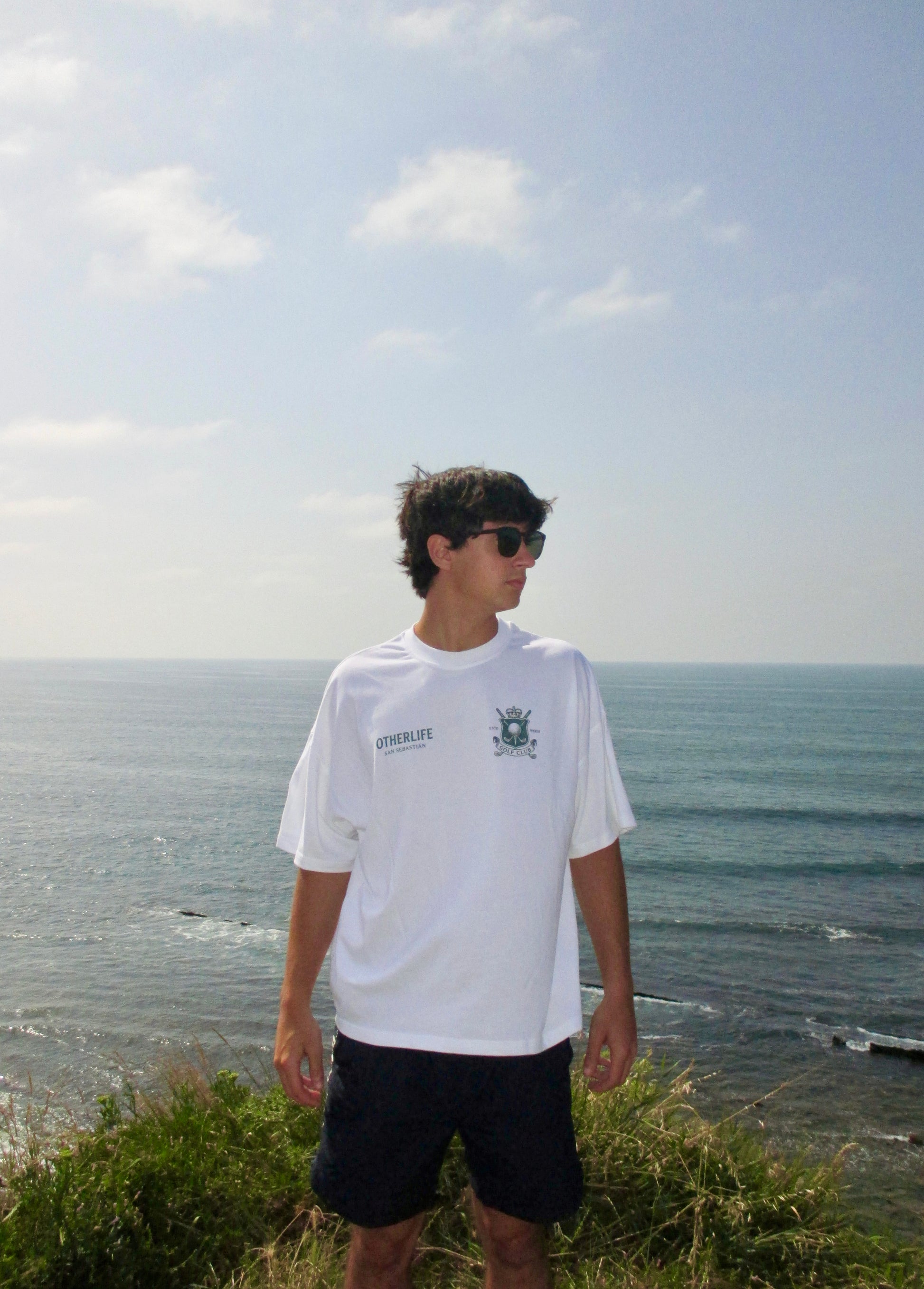 Camiseta de alto gramaje boxy en color blanco. Inspirada en la estética retro del golf y el imaginario veraniego de clubes donde el ritmo es lento y el sol pega suave. Ideal para llevar aunque no juegues al golf.